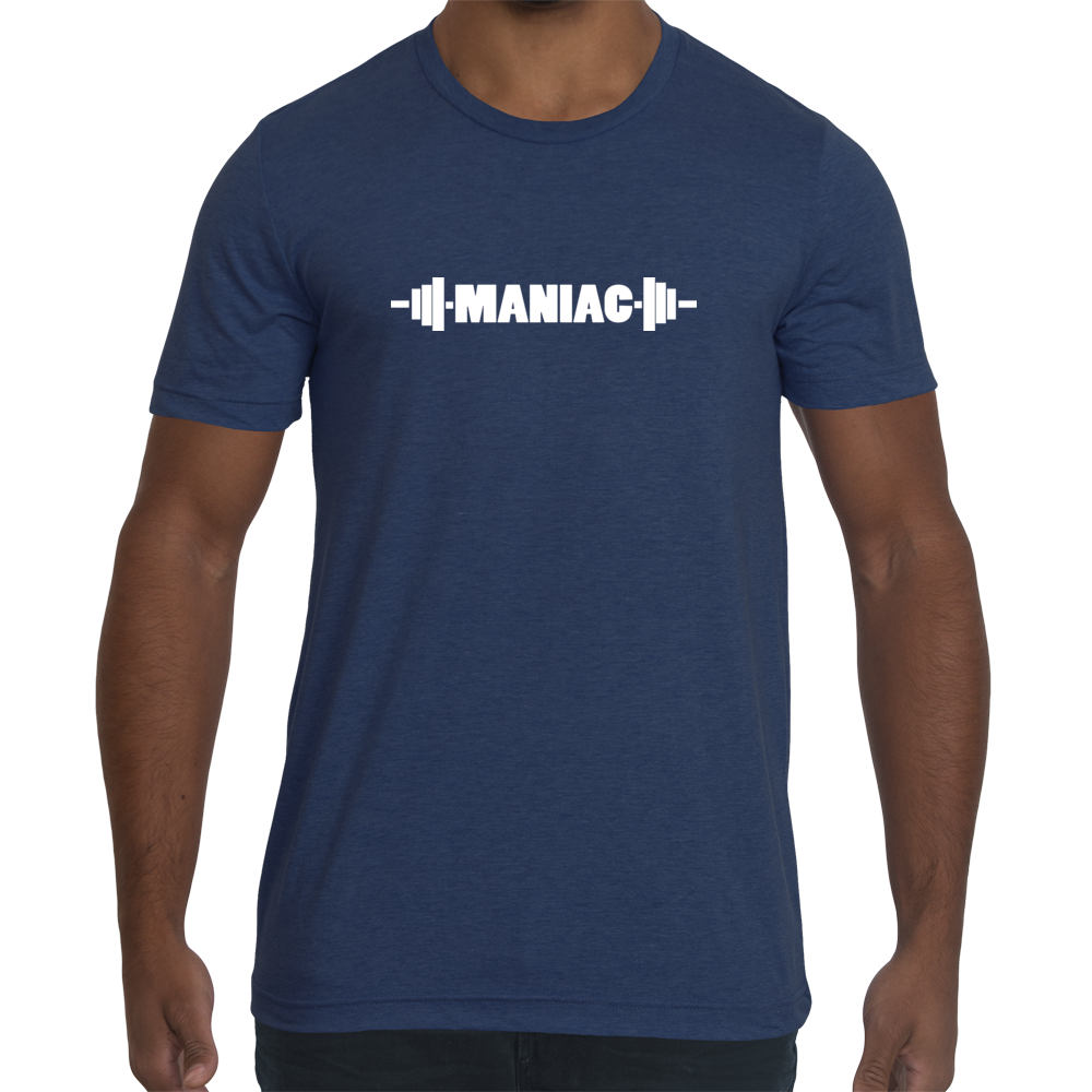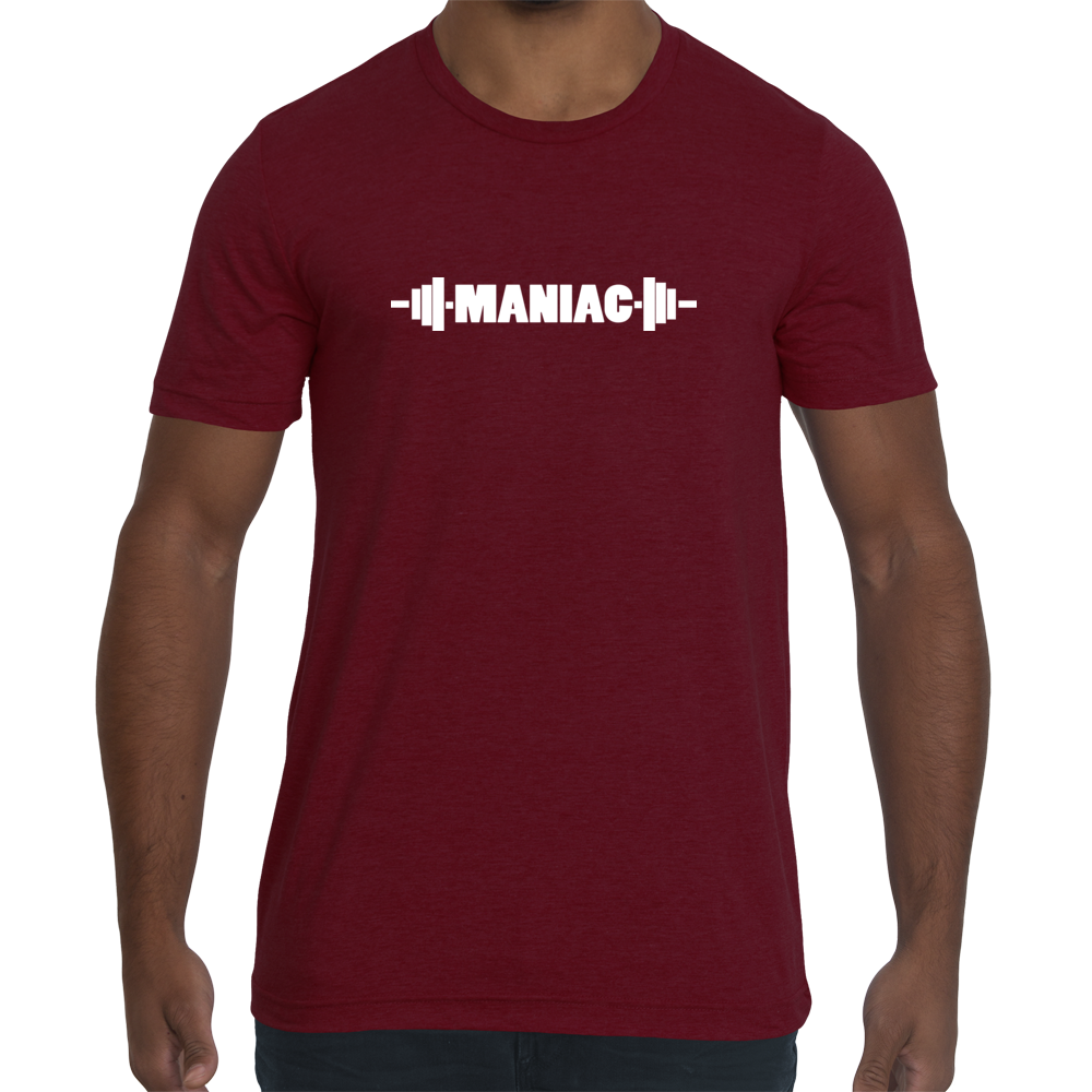 It is rumored that you must be a Maniac to endure the punishment and abuse you experience in powerlifting. Although you may be a lunatic, you might as well look and feel great in your padded room. Same make up as the fabulous Garage Gym Rat™ Tee with polyester, cotton, and rayon blend. A masterpiece. The cotton lends both comfort and durability; the addition of Rayon makes for a unique texture and drapes against the body for a slimming, toned look. Go CRAZY … get two!